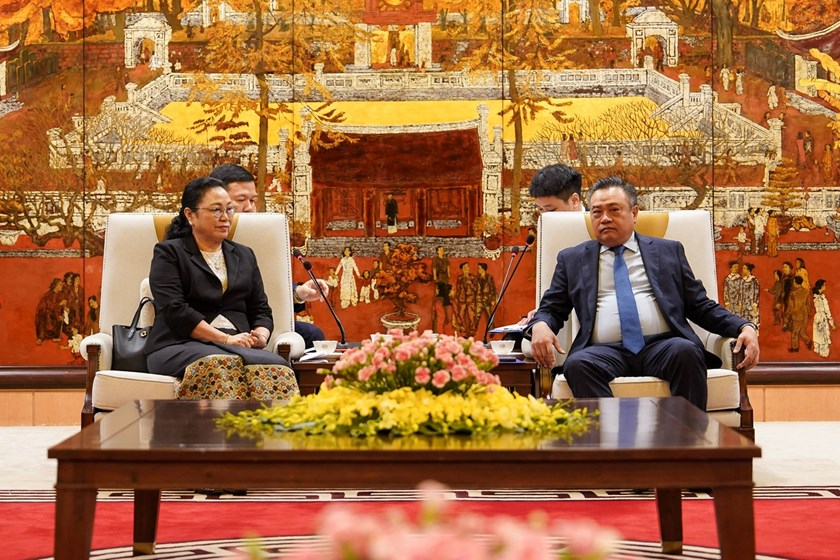 ສະຫາຍ ເຈິນ ສີ ແທັງ ໄດ້ສະແດງຄວາມປິຕິຊົມຊື່ນທີ່ໄດ້ຕ້ອນຮັບສະຫາຍ ນາງ ຄຳເພົາ ເອີນທະວັນ ພ້ອມຄະນະທີ່ມາຢ້ຽມຢາມ ແລະ ເຮັດວຽກໃນຄັ້ງນີ້; ພ້ອມທັງເນັ້ນໜັກເຖິງສາຍພົວພັນມິດຕະພາບ ທີ່ເປັນມູນເຊື້ອອັນດີງາມ ລະຫວ່າງ ຫວຽດນາມ ແລະ ລາວ, ກໍຄືລະຫວ່າງ ນະຄອນຫຼວງ ຮ່າໂນ້ຍ ກັບ ນະຄອນຫຼວງວຽງຈັນ, ແຂວງ ຫຼວງພະບາງ ແລະ ບັນດາທ້ອງຖິ່ນຂອງລາວ. ໃນໂອກາດນີ້, ສະຫາຍຍັງໄດ້ແຈ້ງໃຫ້ຊາບກ່ຽວກັບ ການພົວພັນຮ່ວມມືລະຫວ່າງ ນະຄອນຫຼວງຮ່າໂນ້ຍ ແລະ ນະຄອນຫຼວງວຽງຈັນ ໃນຫຼາຍຂະແໜງ; ໃນນັ້ນ, ມີຂະແໜງການສຶກສາ ແລະ ກໍ່ສ້າງພະນັກງານ ໂດຍຈະສືບຕໍ່ຜັນຂະຫຍາຍໃຫ້ທຶນສຶກສາລະດັບຕ່າງໆໃຫ້ນະຄອນຫຼວງວຽງຈັນ ແລະ ພ້ອມທີ່ຈະໃຫ້ການຮ່ວມມື, ສະໜັບສະໜູນ ແລະ ອຳນວຍຄວາມສະດວກໃຫ້ສະຖານທູດລາວ ເຮັດສຳເລັດໜ້າທີ່ຢູ່ ສສ ຫວຽດນາມ ຕາມການມອບໝາຍຂອງພັກ ແລະ ລັດຖະບານລາວມອບໃຫ້.